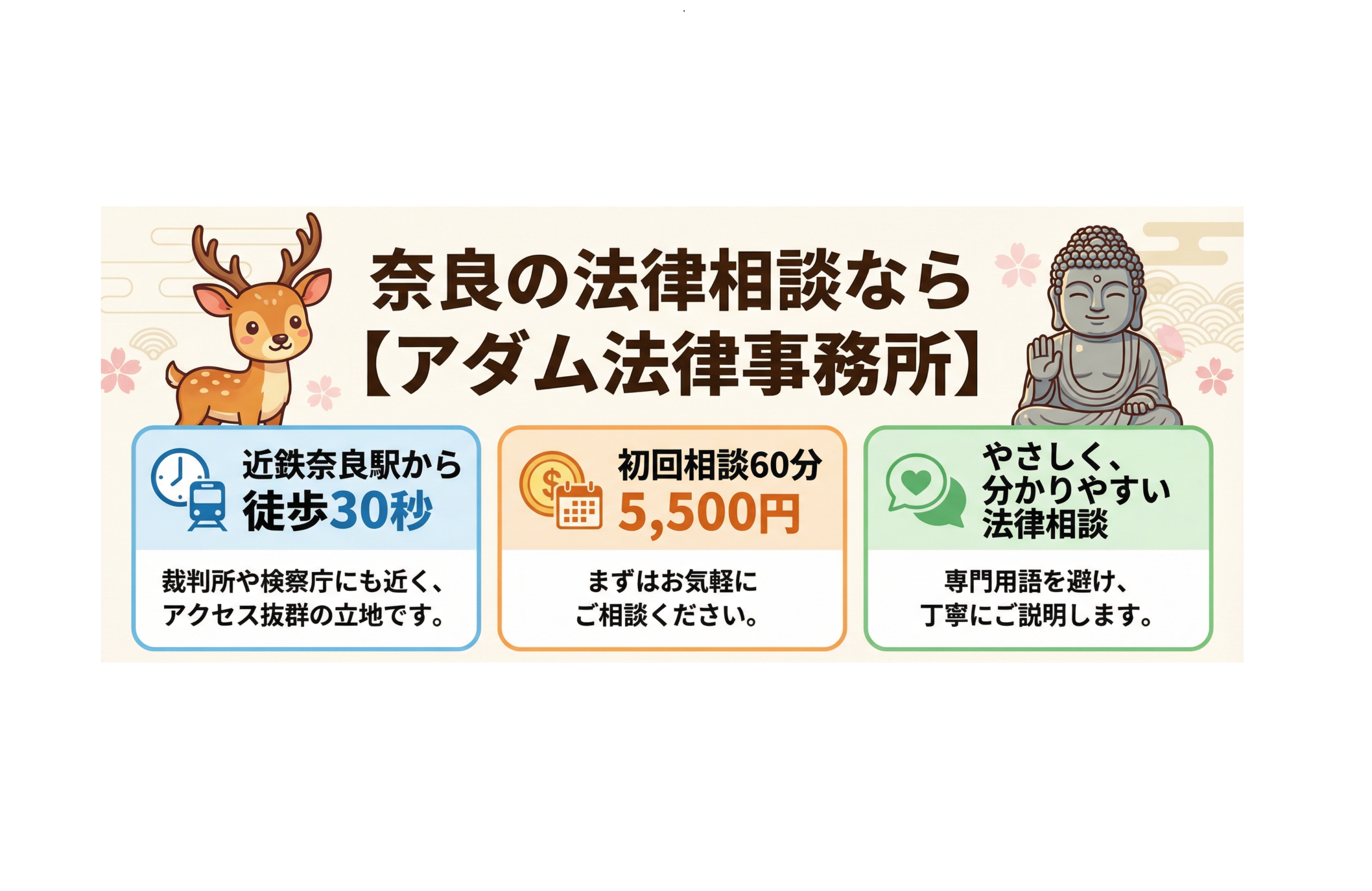 アダム法律事務所は、やさしい・ていねい・分かりやすい法律相談をご提供し、皆様に安心していただける弁護士であることを常に心がけております。